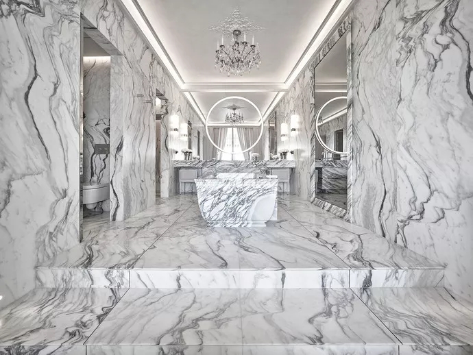 拉格斐說,“大廳有兩種功能,一是形成人們對整棟樓的印象,二是為人們提供一個用于社交的公共客廳”。要知道他是否在Acqualina莊園的室內設計中兌現了自己對大廳的理解,則得等到2020年。那時,整棟樓的室內裝修將會最終完成并面向公眾開放。