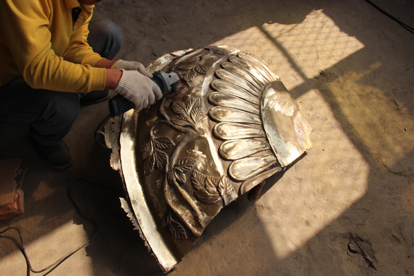 ??把我們拼接好的銅雕焊接的部位都處理成跟我們的泥稿一摸一樣。